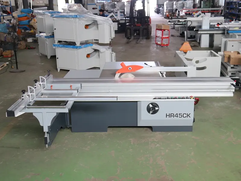1. The sliding table can be adjusted, and the main saw blade tilts up to 45°, expanding the saw’s working range.